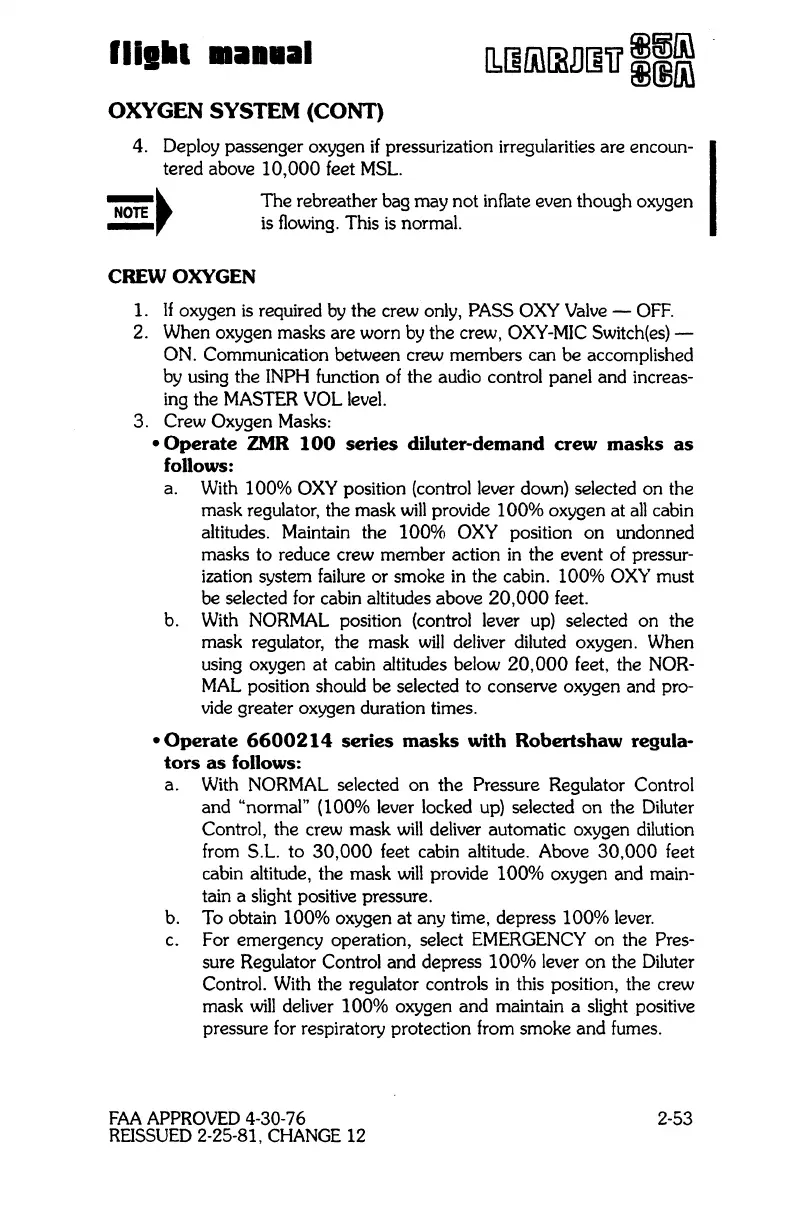 cabin altitude, the mask will provide 100% oxygen and main-