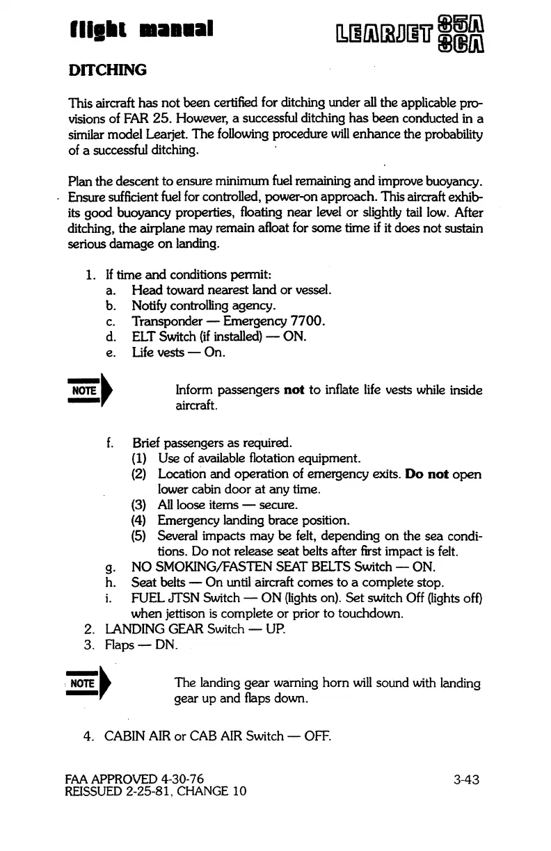 This aircraft has not been certified for ditching under