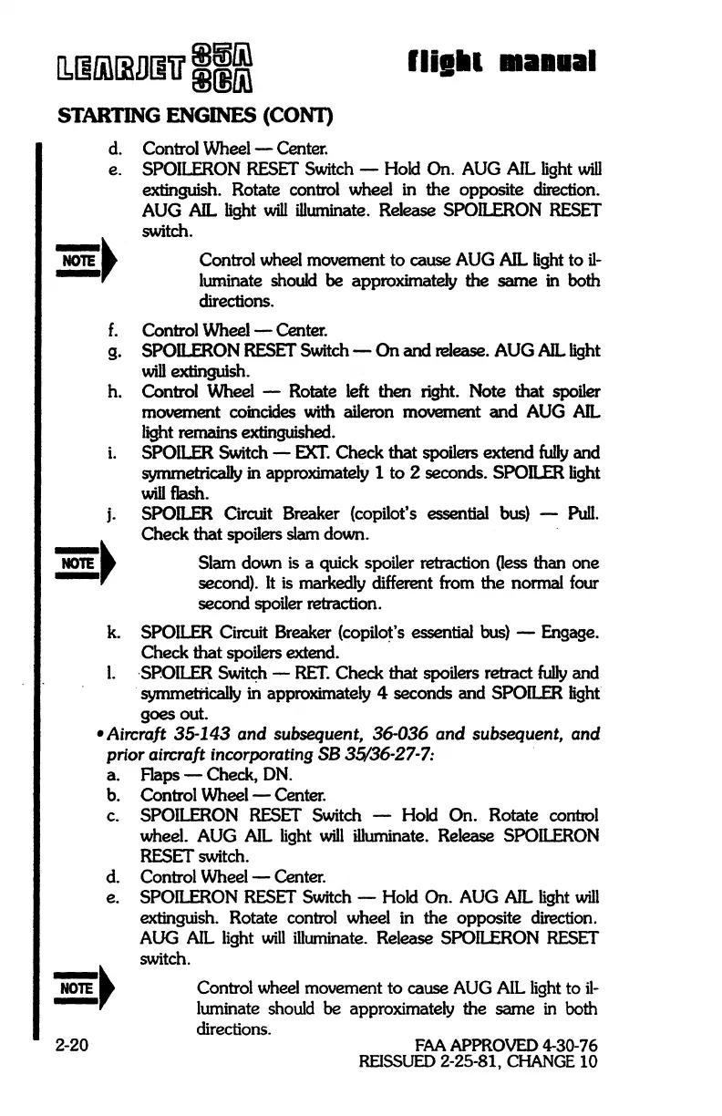 e. SPOILERON RESET Switch - Hold On. AUG AIL light
