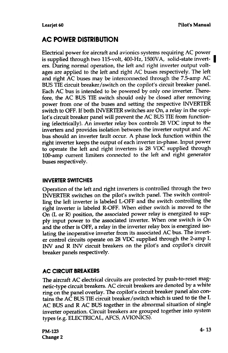 Learjet 60 - AC Circuit Breakers; AC Power Distribution; INVERTER Switches