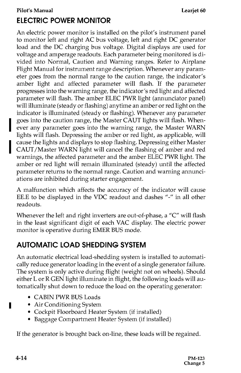 Learjet 60 - Automatic Load Shedding System; Electric Power Monitor