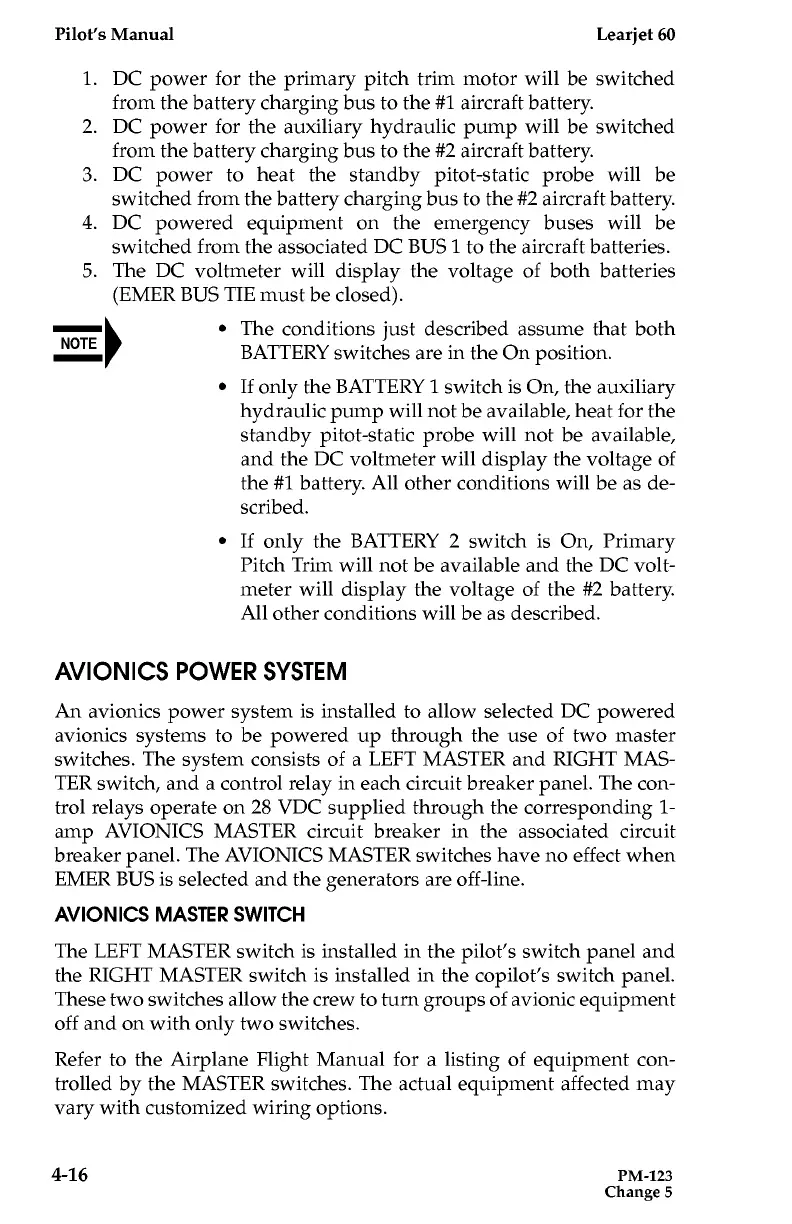 Learjet 60 - Avionics Master Switch; Avionics Power System