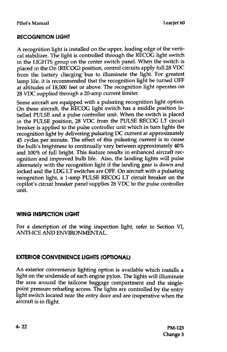 Learjet 60 - Exterior Convenience Lights; Recognition Light; Wing Inspection Light