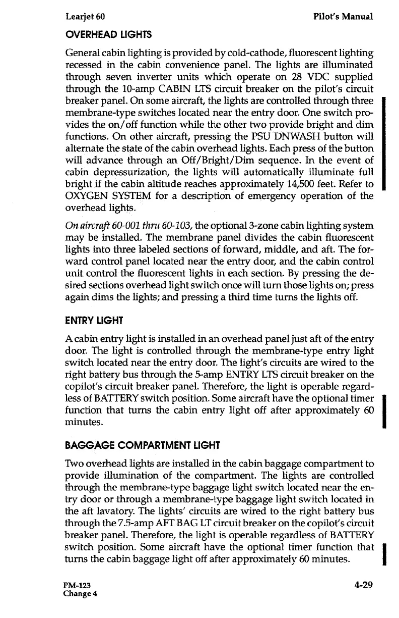 Learjet 60 - Baggage Compartment Light; Entry Light; Overhead Lights