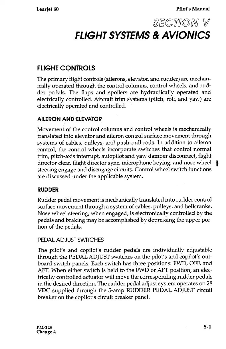 Learjet 60 - Aileron and Elevator; Flight Controls; Pedal Adjust Switches; Rudder