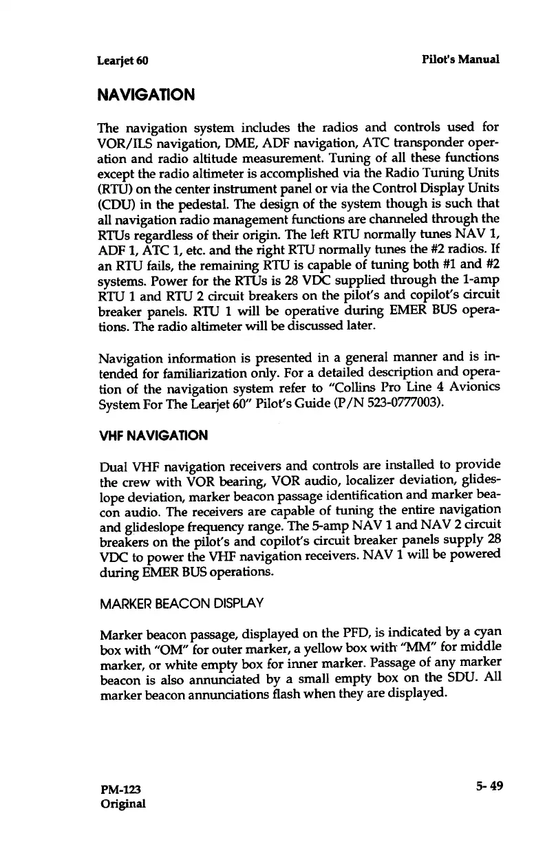 Learjet 60 - Marker Beacon Display; Navigation; VHF Navigation