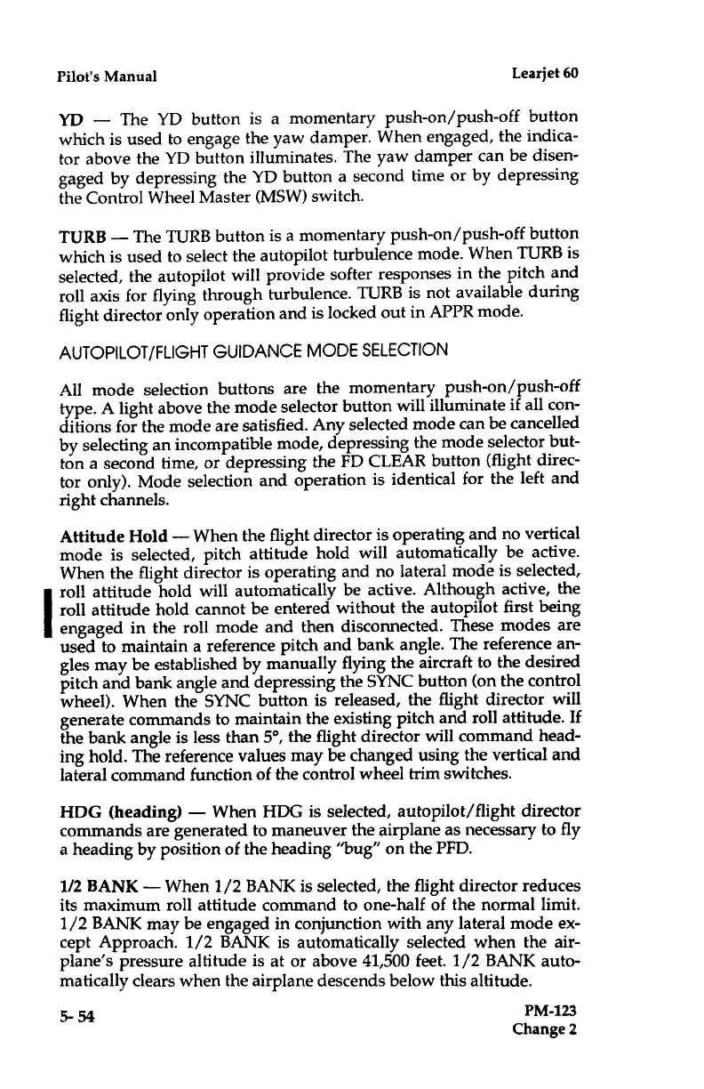 Learjet 60 - Autopilot;Flight Guidance Mode Selection