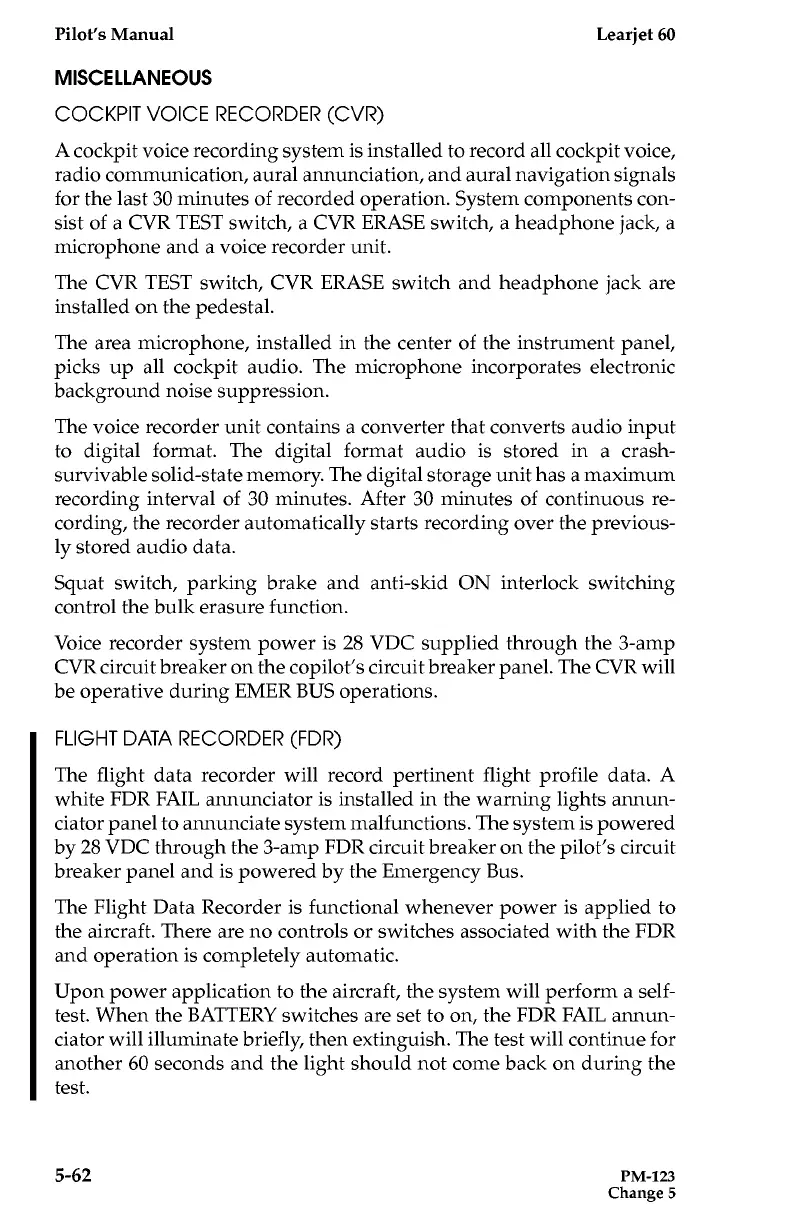 Learjet 60 - Cockpit Voice Recorder (CVR); Flight Data Recorder (FDR); Miscellaneous