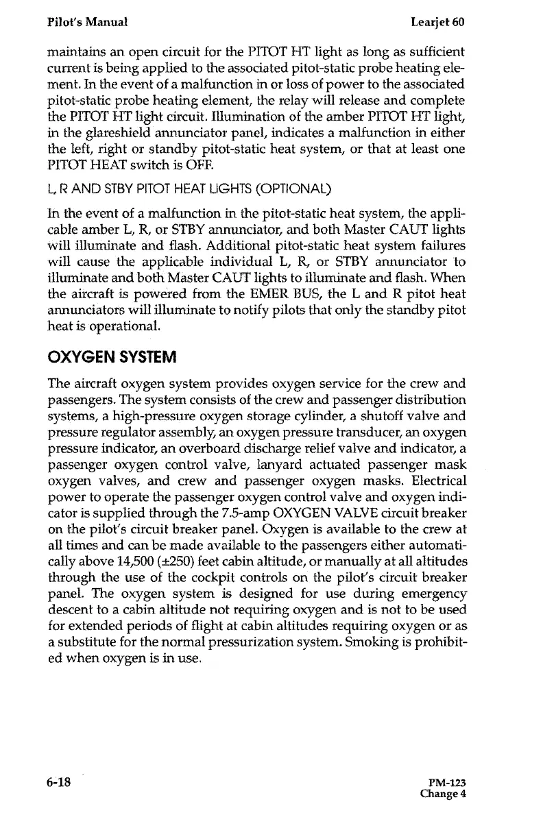 Learjet 60 - L, R and STBY Pitot Heat Lights; Oxygen System
