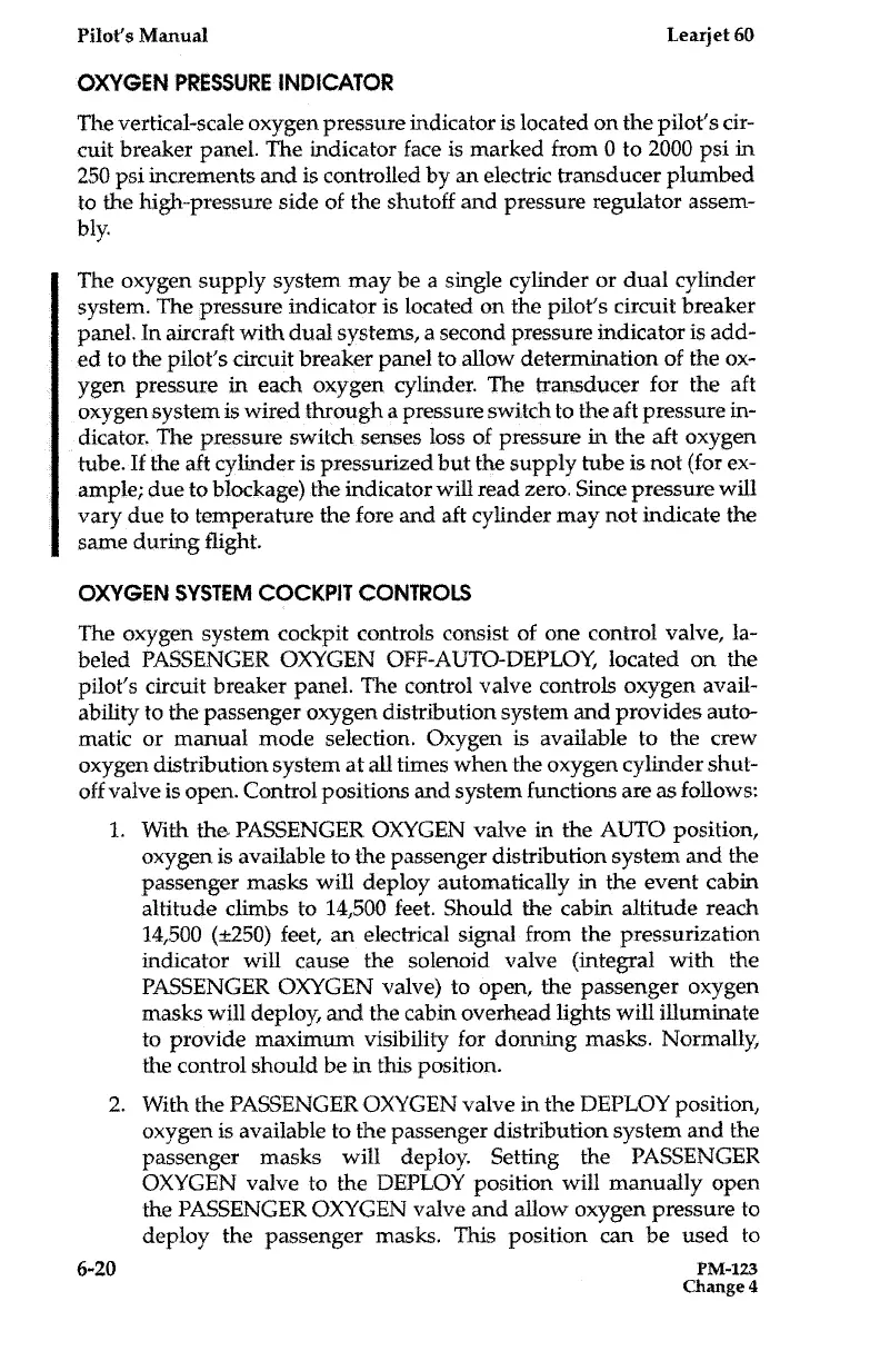 Learjet 60 - Oxygen Pressure Indicator; Oxygen System Cockpit Controls