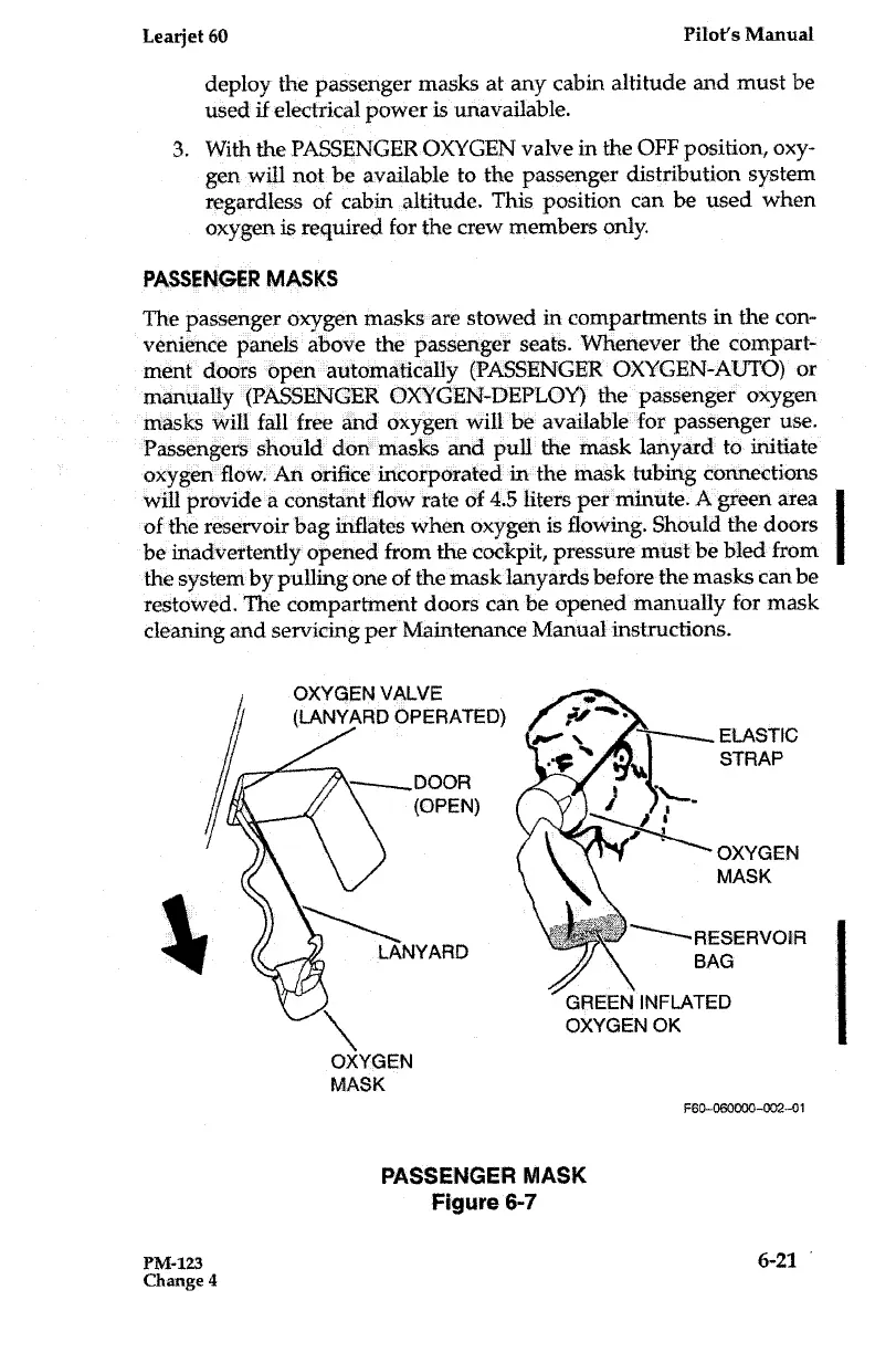 Learjet 60 - Passenger Mask (Figure 6-7); Passenger Masks