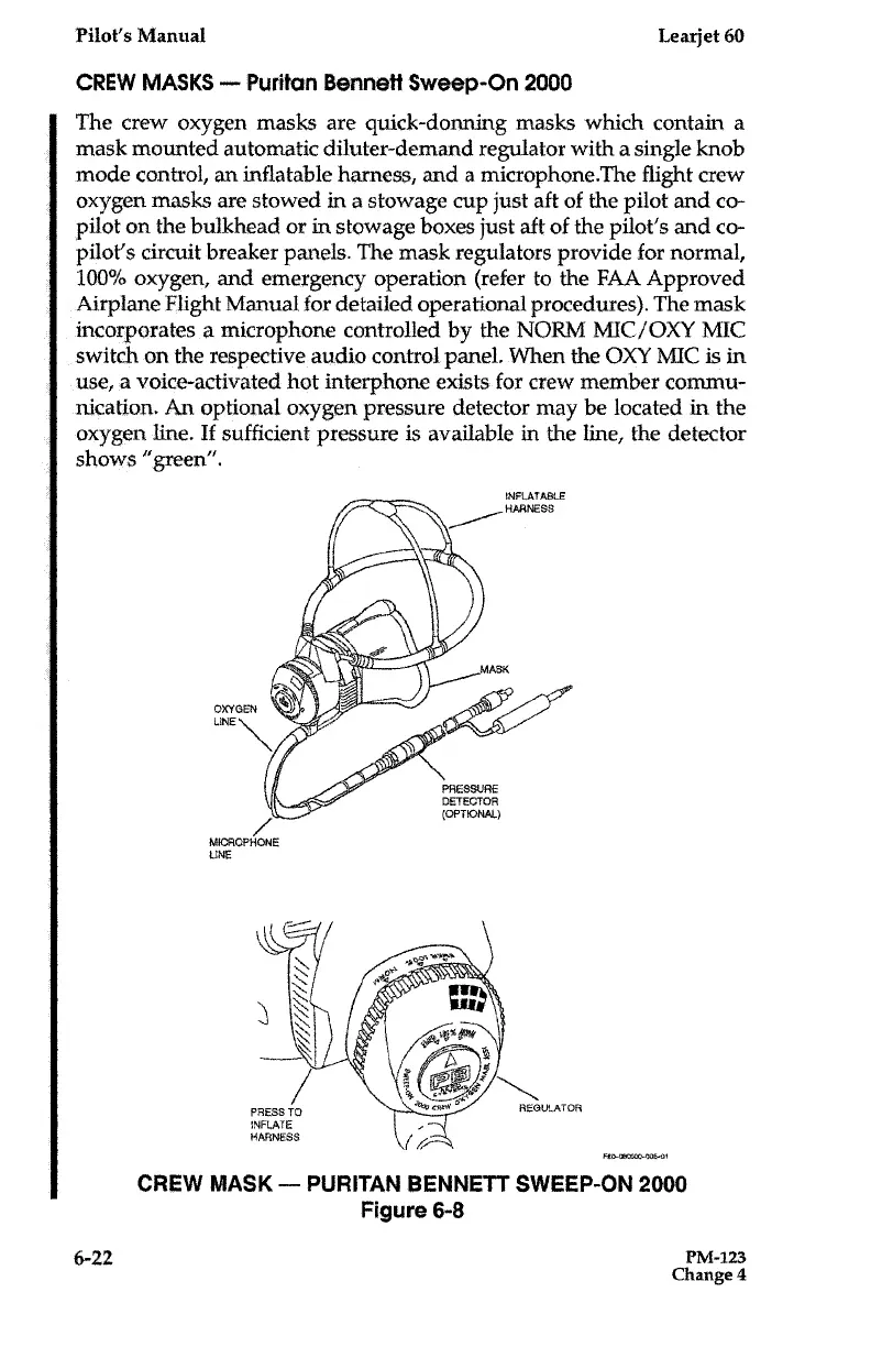 Learjet 60 - (Figure 6-8); Crew Mask - Puritan Bennett Sweep-On 2000; Puritan Bennett Sweep-On 2000
