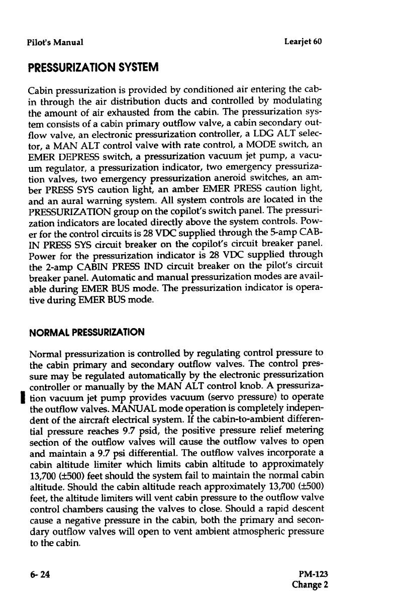 Learjet 60 - Normal Pressurization; Pressurization System