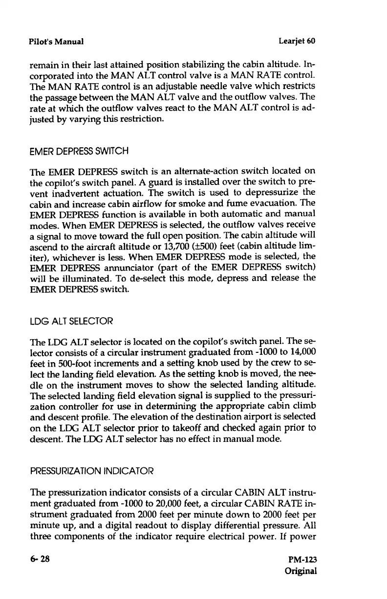Learjet 60 - EMER DEPRESS Switch; LDG ALT Selector; Pressurization Indicator