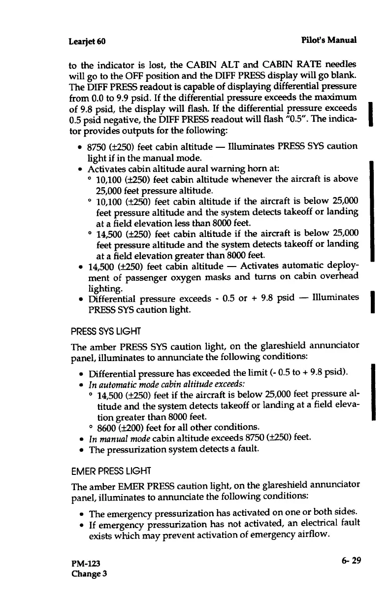 Learjet 60 - EMER PRESS Light; PRESS SYS Light