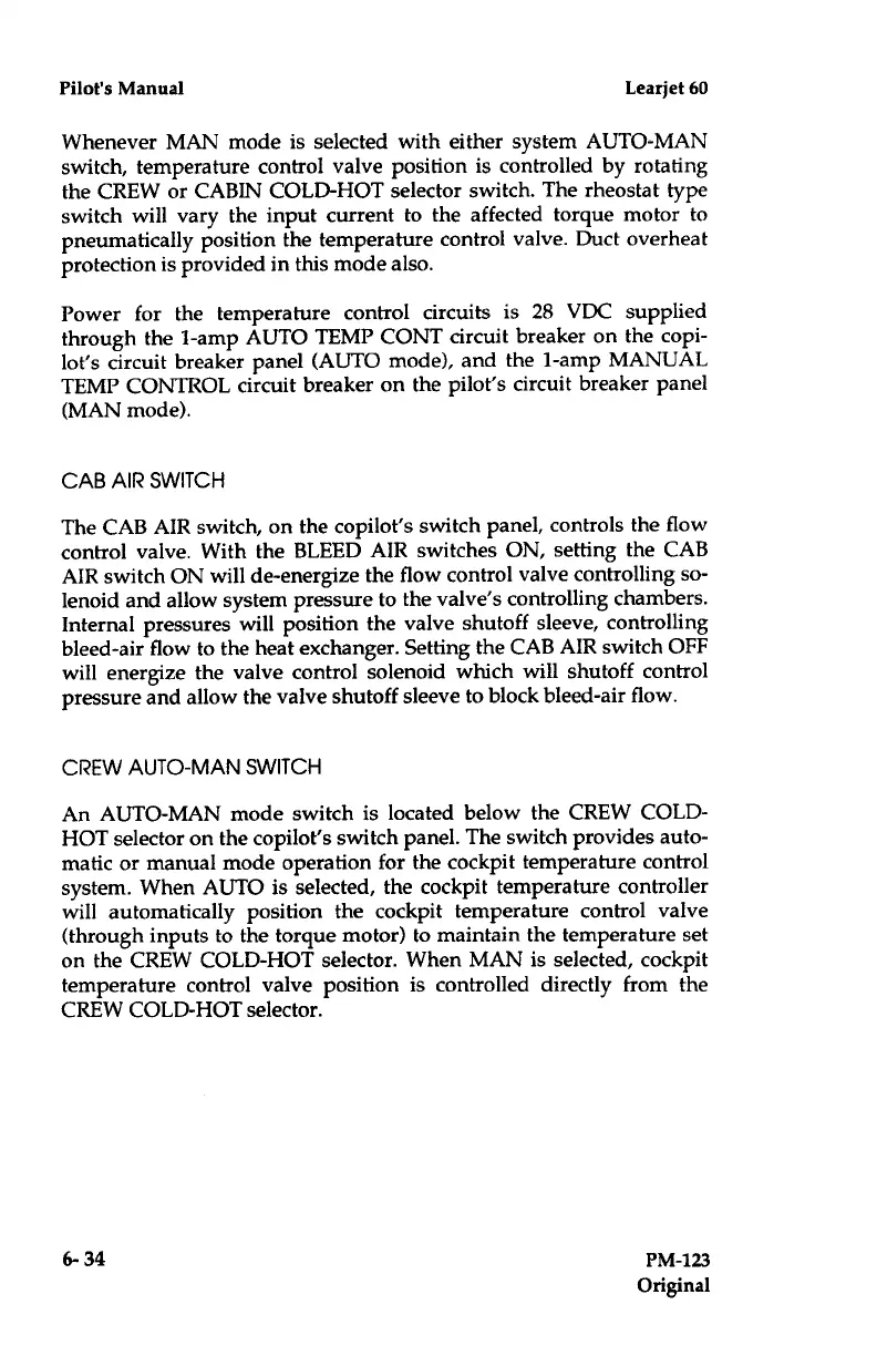 Learjet 60 - CAB AIR Switch; Crew AUTO-MAN Switch