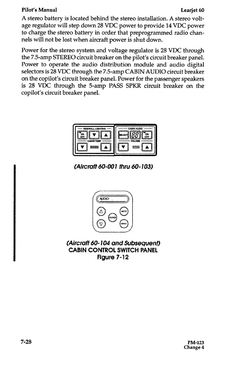 Learjet 60 - Cabin Control Switch Panel (Figure 7-12)