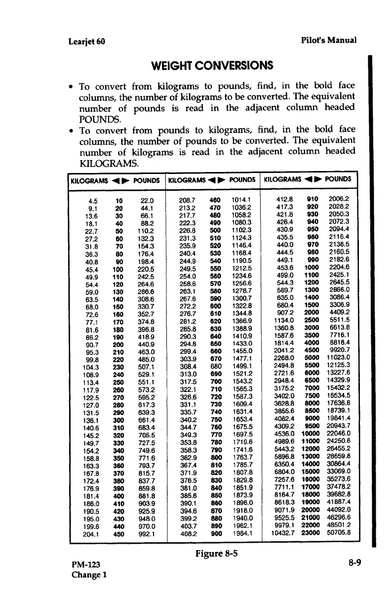 Learjet 60 - Weight Conversions (Figure 8-5)