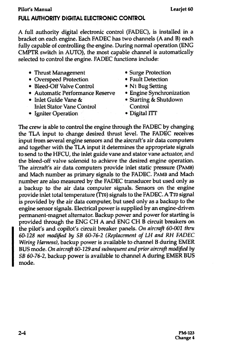 Learjet 60 - Automatic Performance Reserve (AJ,R); Full Authority Digital Electronic Control