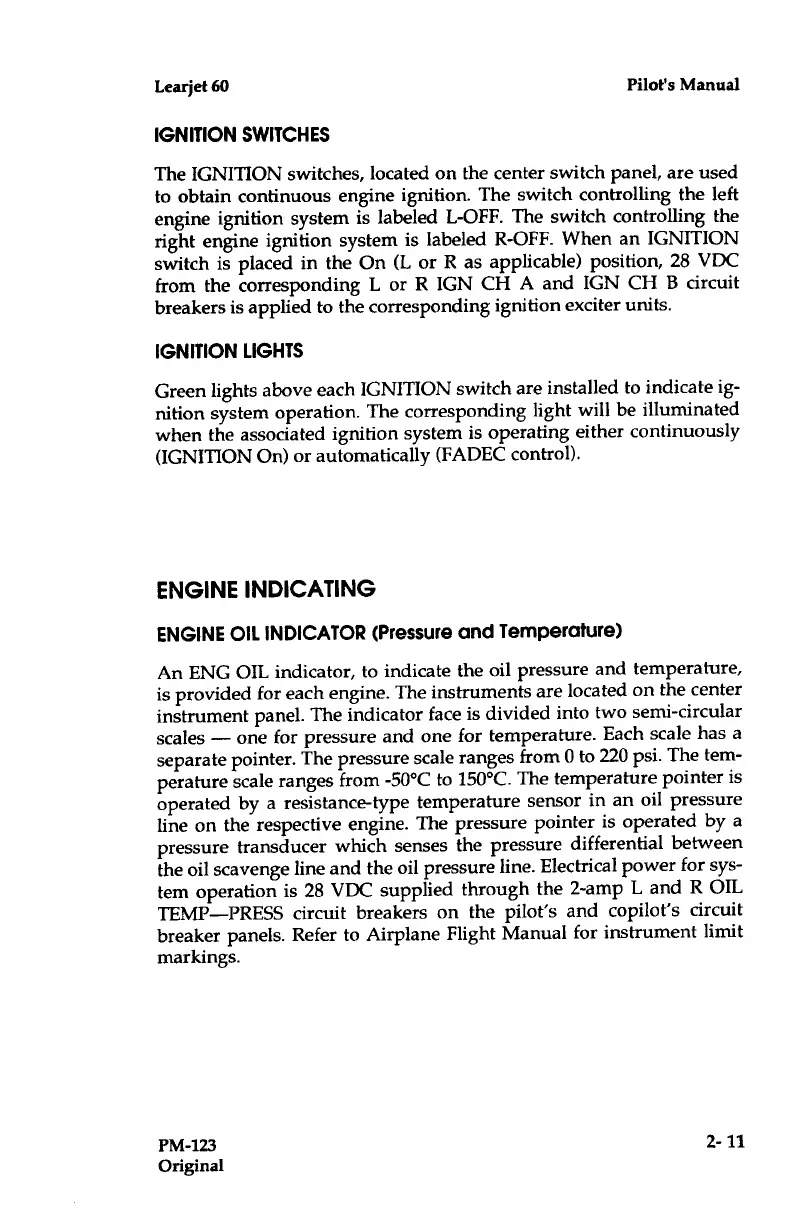 Learjet 60 - Engine Indicating; Engine Oil Indicator (Pressure and Temperature); Ignition Lights; IGNITION Switches