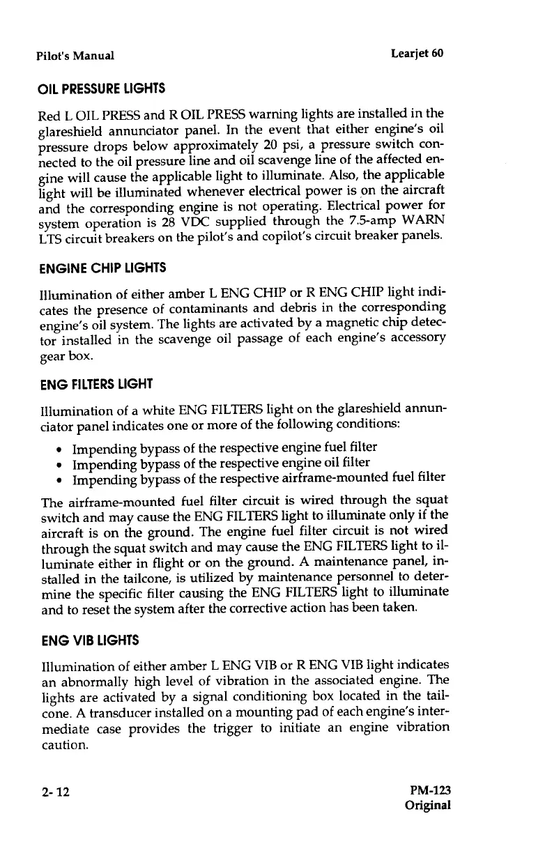 Learjet 60 - Engine Chip Lights; Oil Pressure Lights