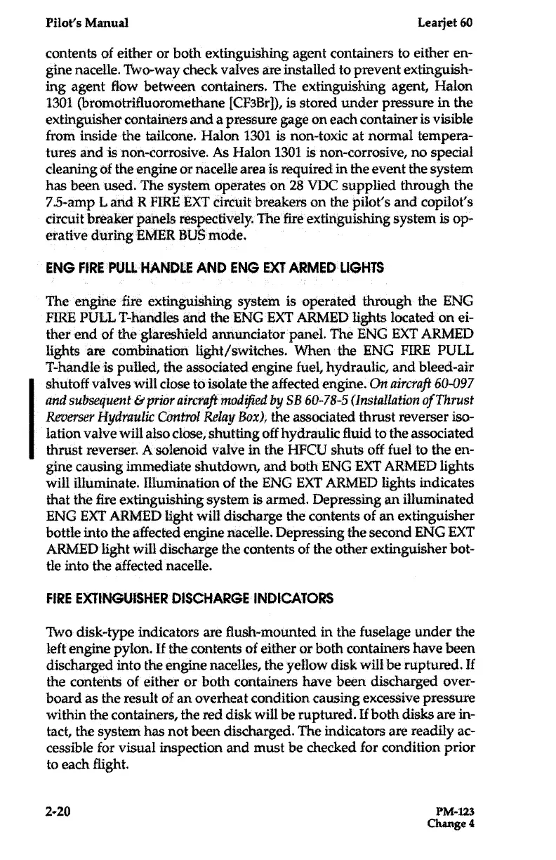 Learjet 60 - ENG FIRE PULL Handle and ENG EXT ARMED Lights; Fire Extinguisher Discharge Indicators