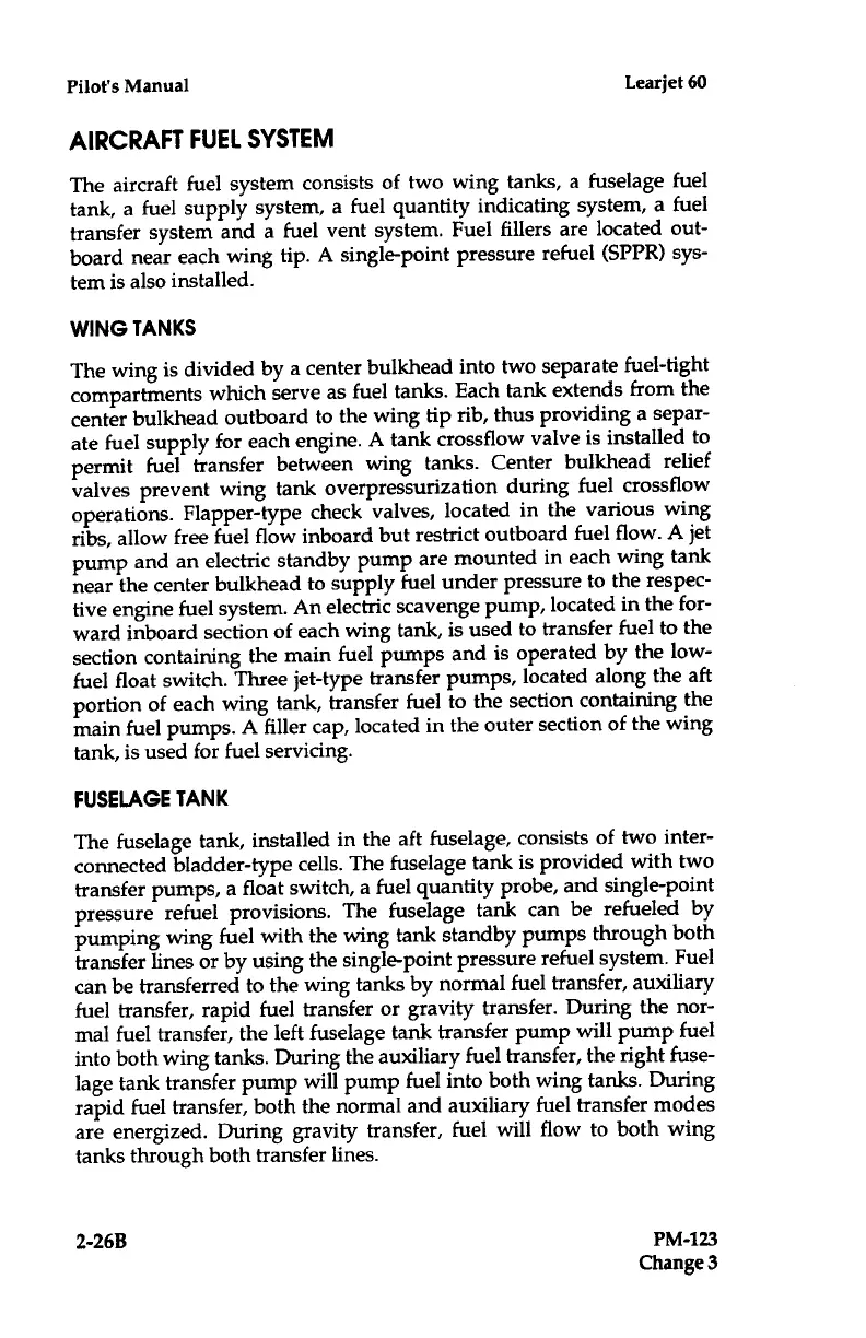 Learjet 60 - Aircraft Fuel System; Fuselage Tank; Wing Tanks