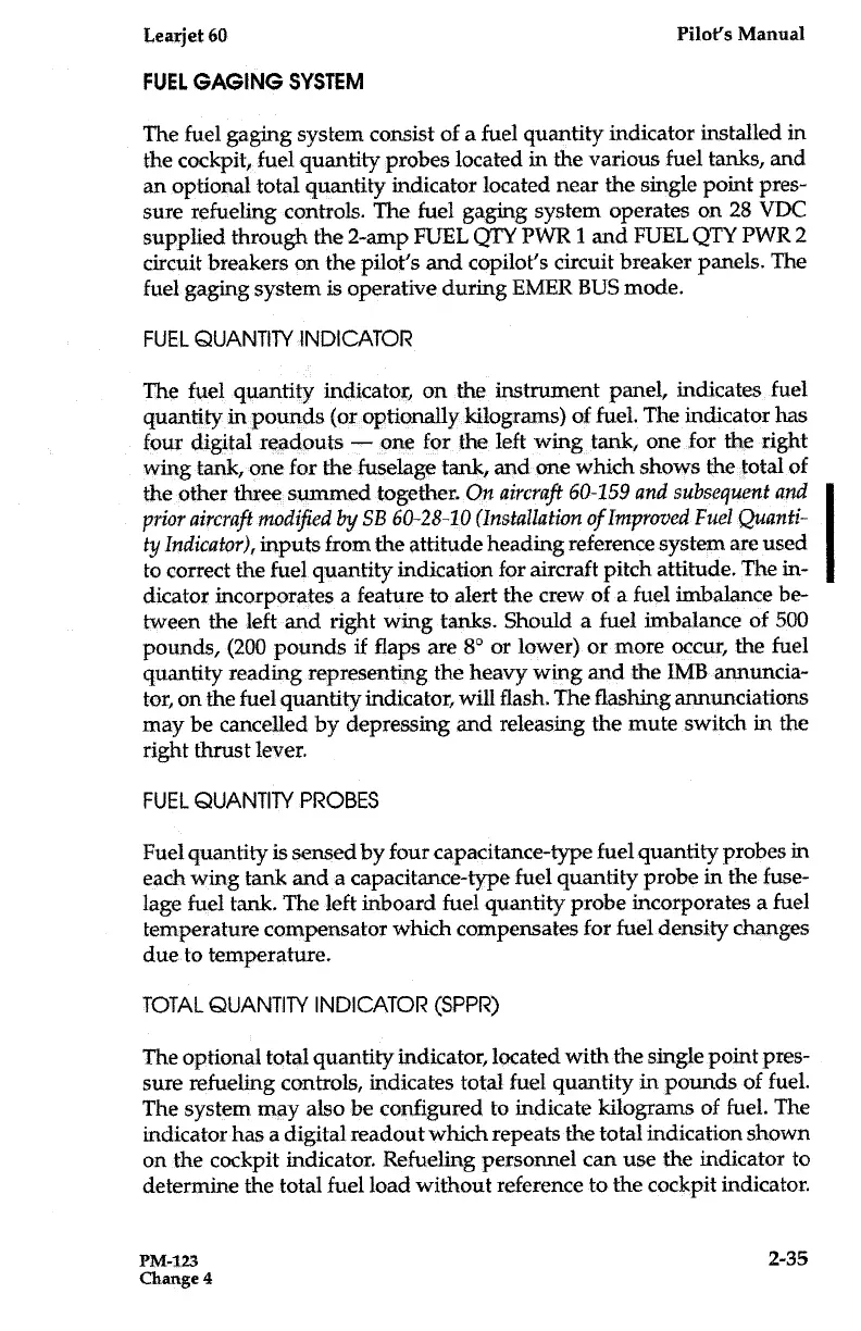 Learjet 60 - Fuel; Fuel Indicator; Fuel Quantity Probes
