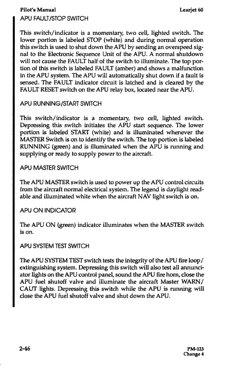 Learjet 60 - APU Switch; APU SYSTEM TEST Switch
