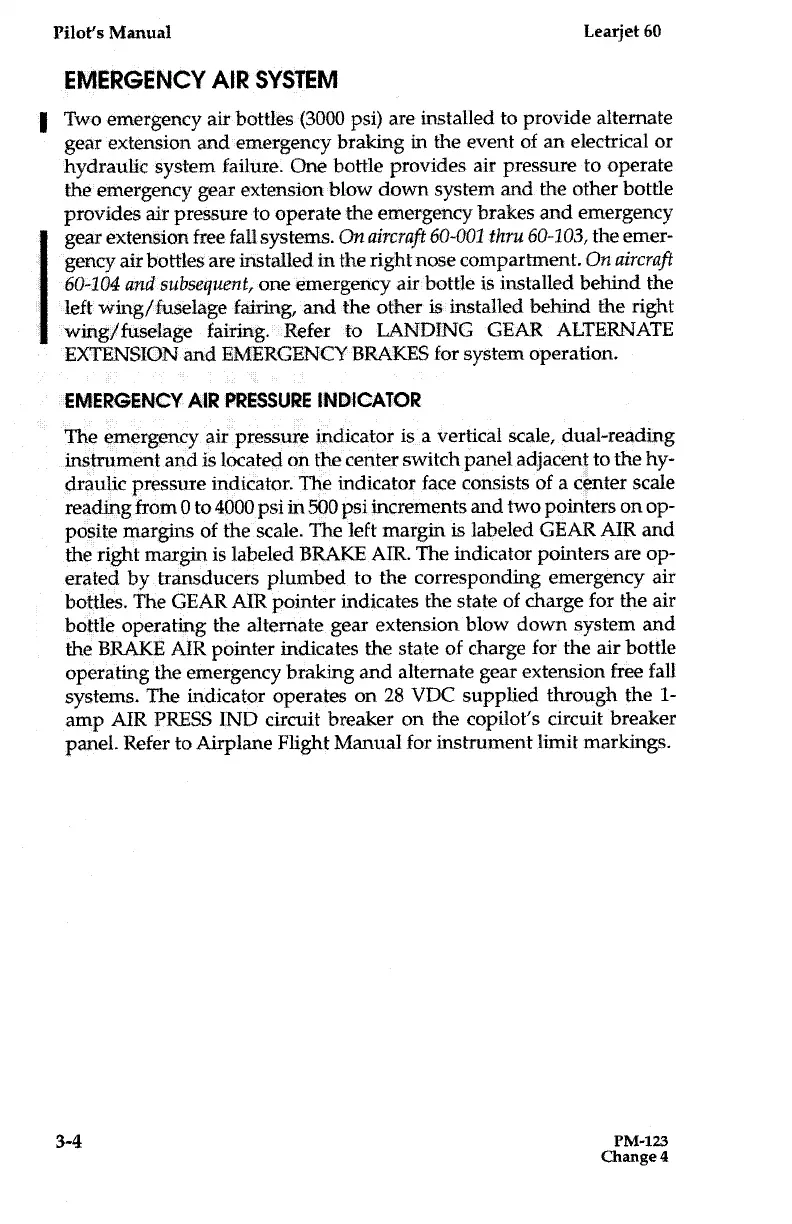 Learjet 60 - Emergency Air Pressure Indicator; Emergency Air System