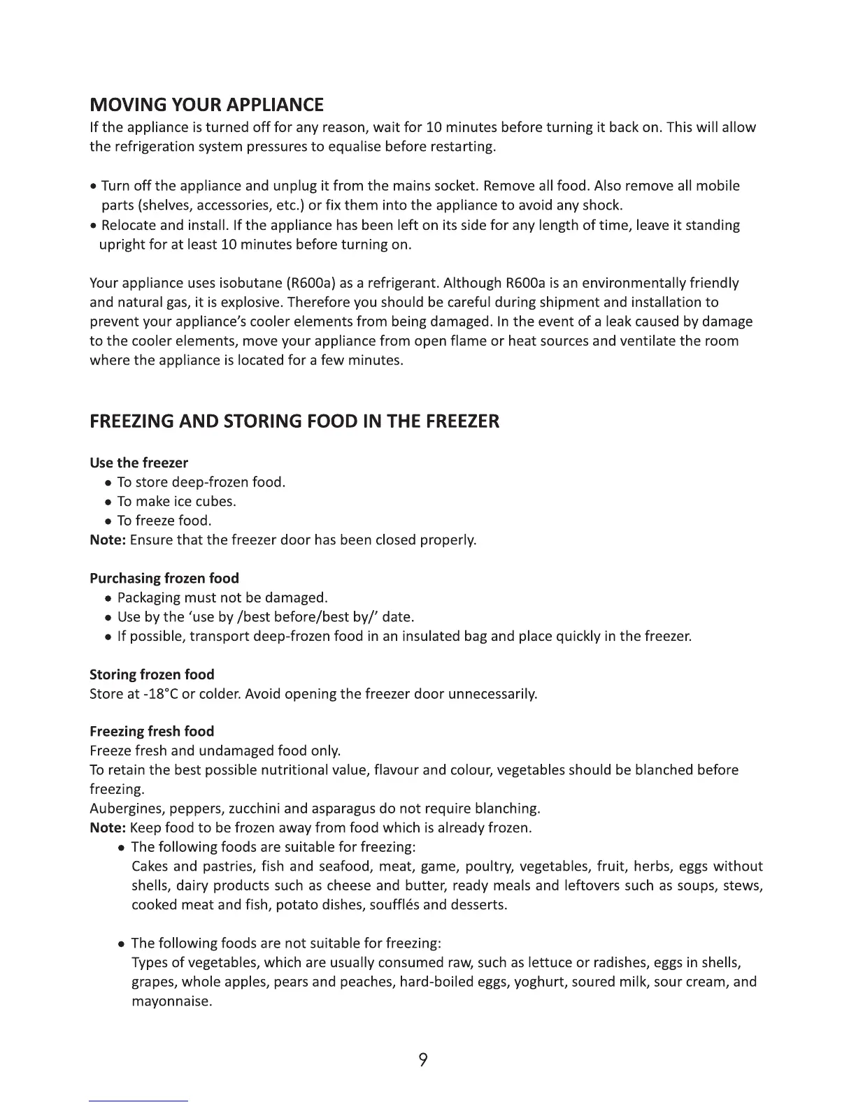 Lec CF100LW MK2 - Freezing and Storing Food in the Freezer; Storing frozen food; Freezing fresh food