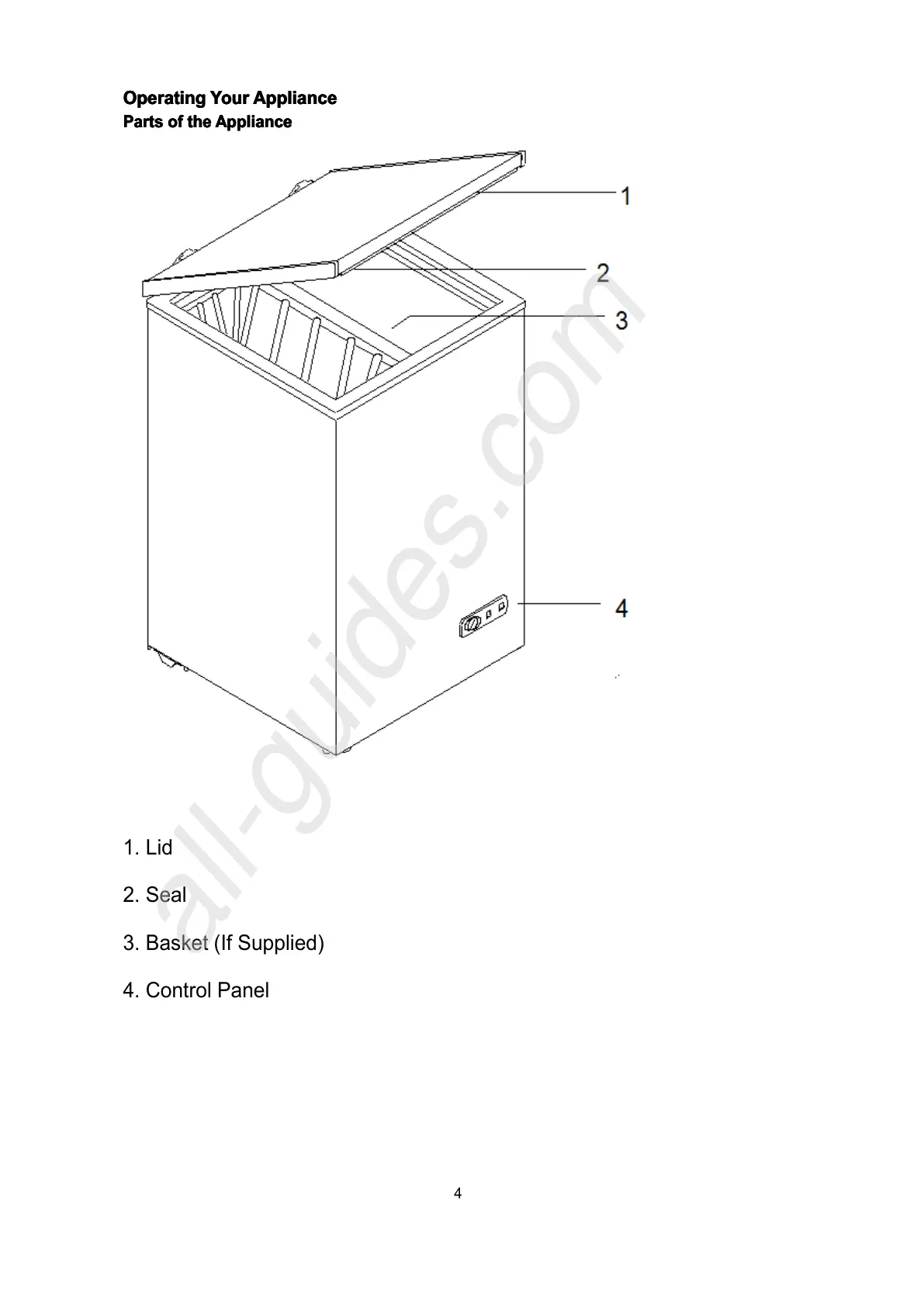 Lec CF100LW - Operating Operating Your Your Your Appliance Appliance Appliance; Parts of the Appliance; Control Panel