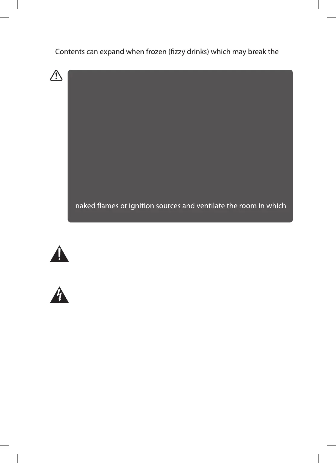 • Do not store bottles or glass containers in the freezer compartment.