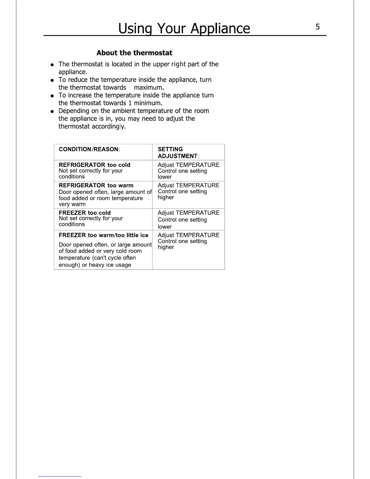 Lec L5511W - Using Your Appliance; Thermostat Operation