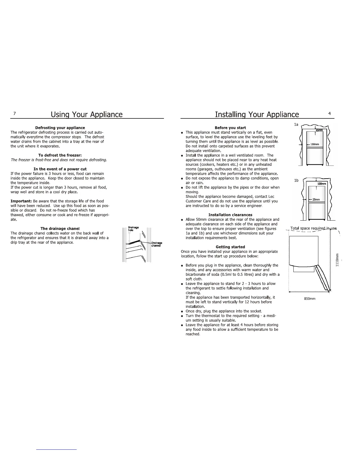 Lec TF50152W - Installing Your Appliance; Pre-Installation Checks; Installation Clearances; Initial Setup Procedure
