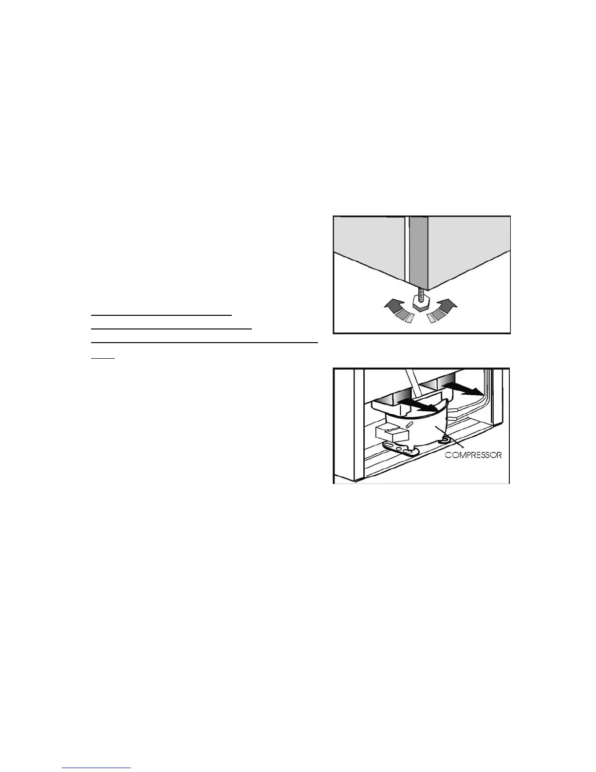 the compressor motor and the cabinet (see diagrams). Do not remove the