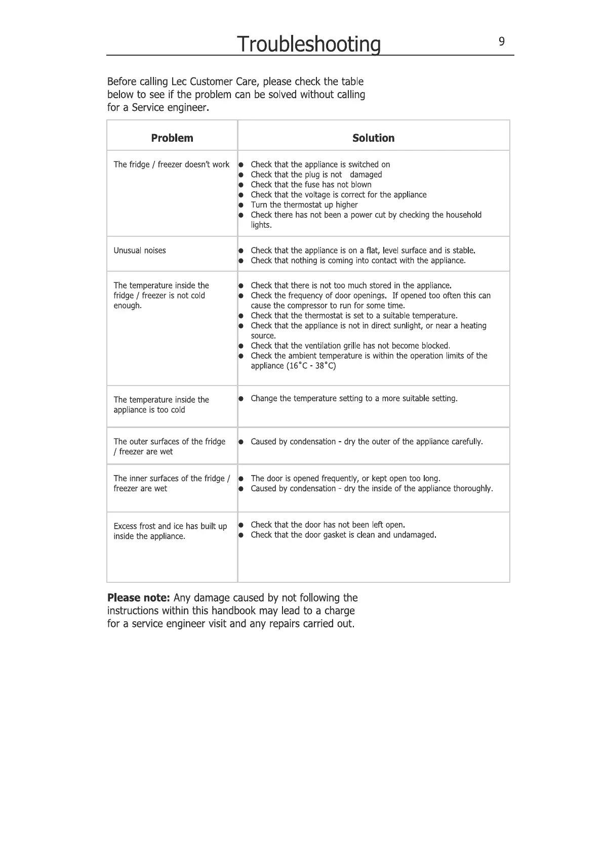 Lec TL55142W - Troubleshooting