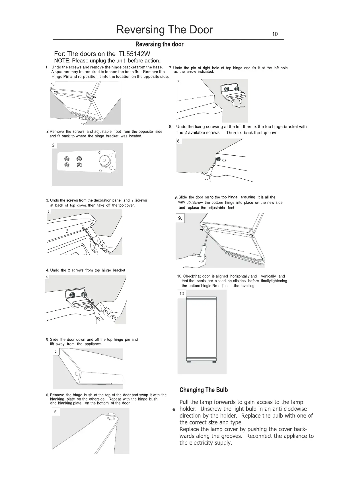Lec TL55142W - Reversing The Door; Changing The Bulb