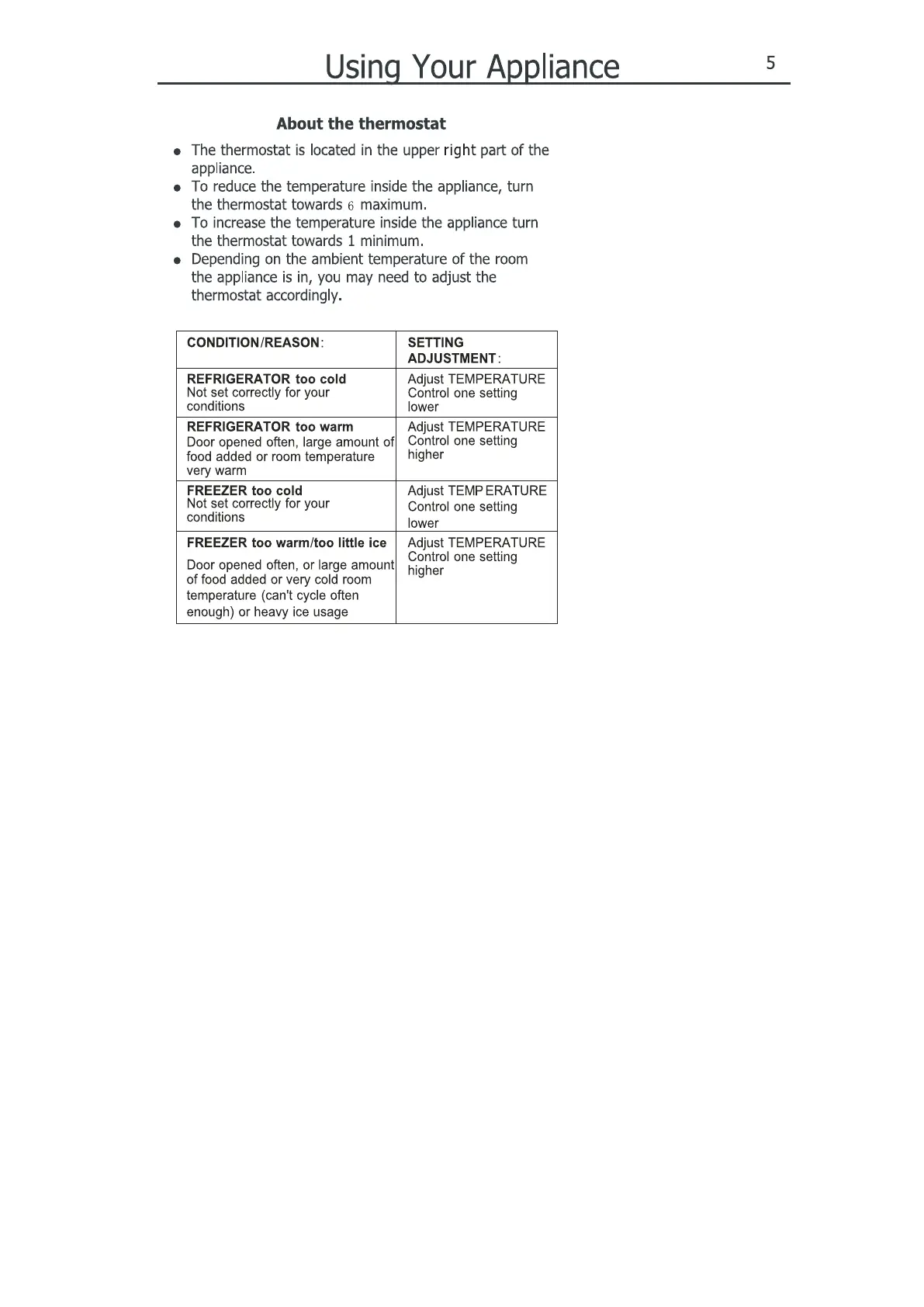 Lec TL55142W - Using Your Appliance; About the Thermostat