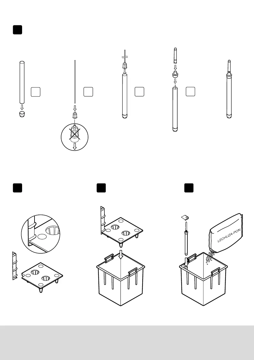 Lechuza CUBE 40 - Assembly Steps; Step 1: Prepare Support Tubes; Step 2 & 3: Assemble Base and Liner; Step 4: Add Growing Medium