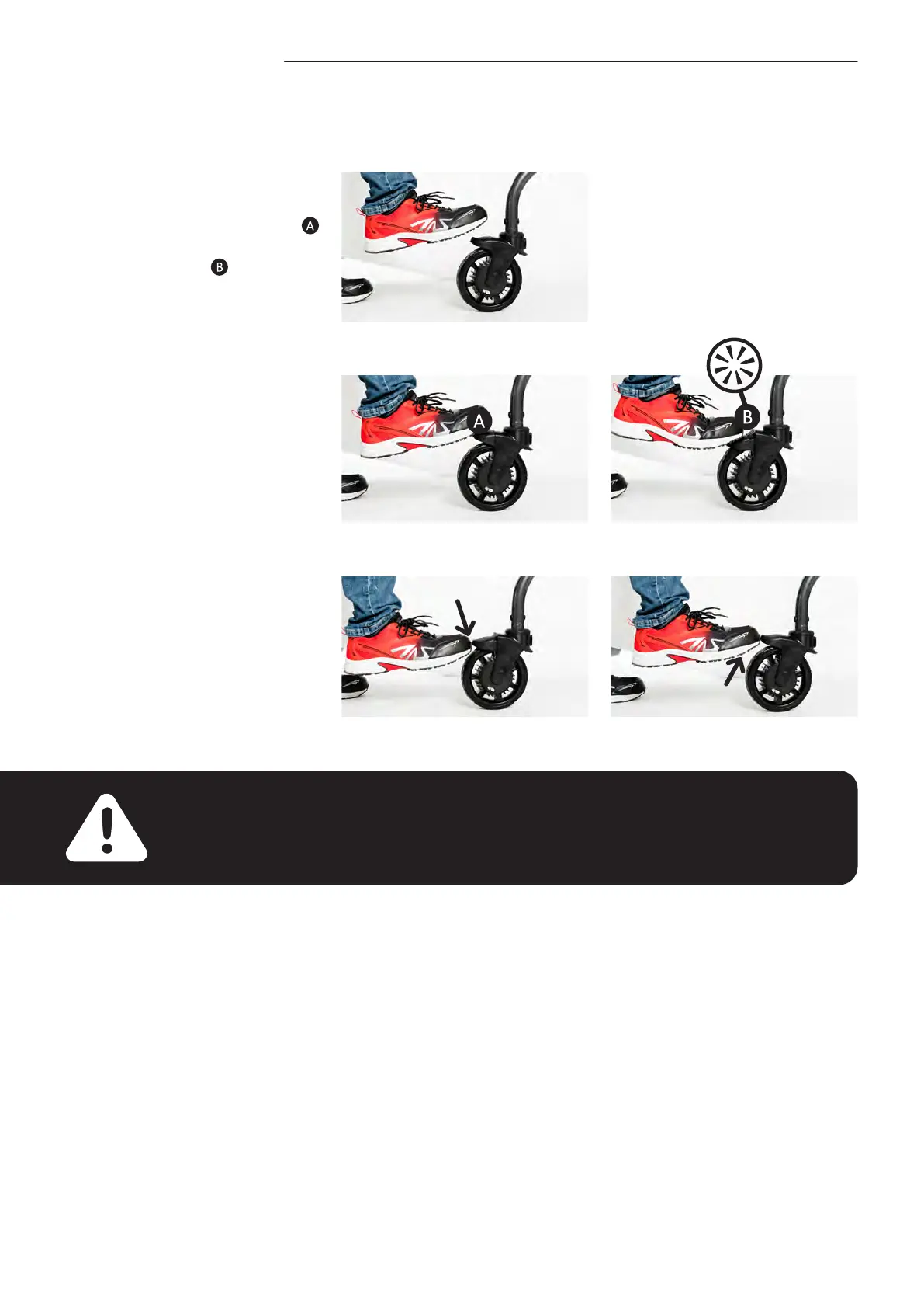 Attention – Les freins doivent être serrés et la fonction directionnelle des quatre