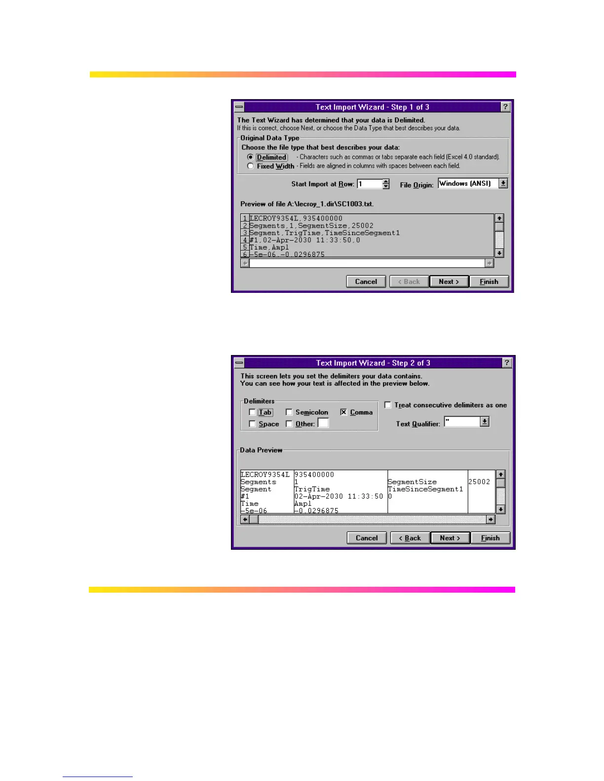 The next step allows the specific delimiter to be specified. The