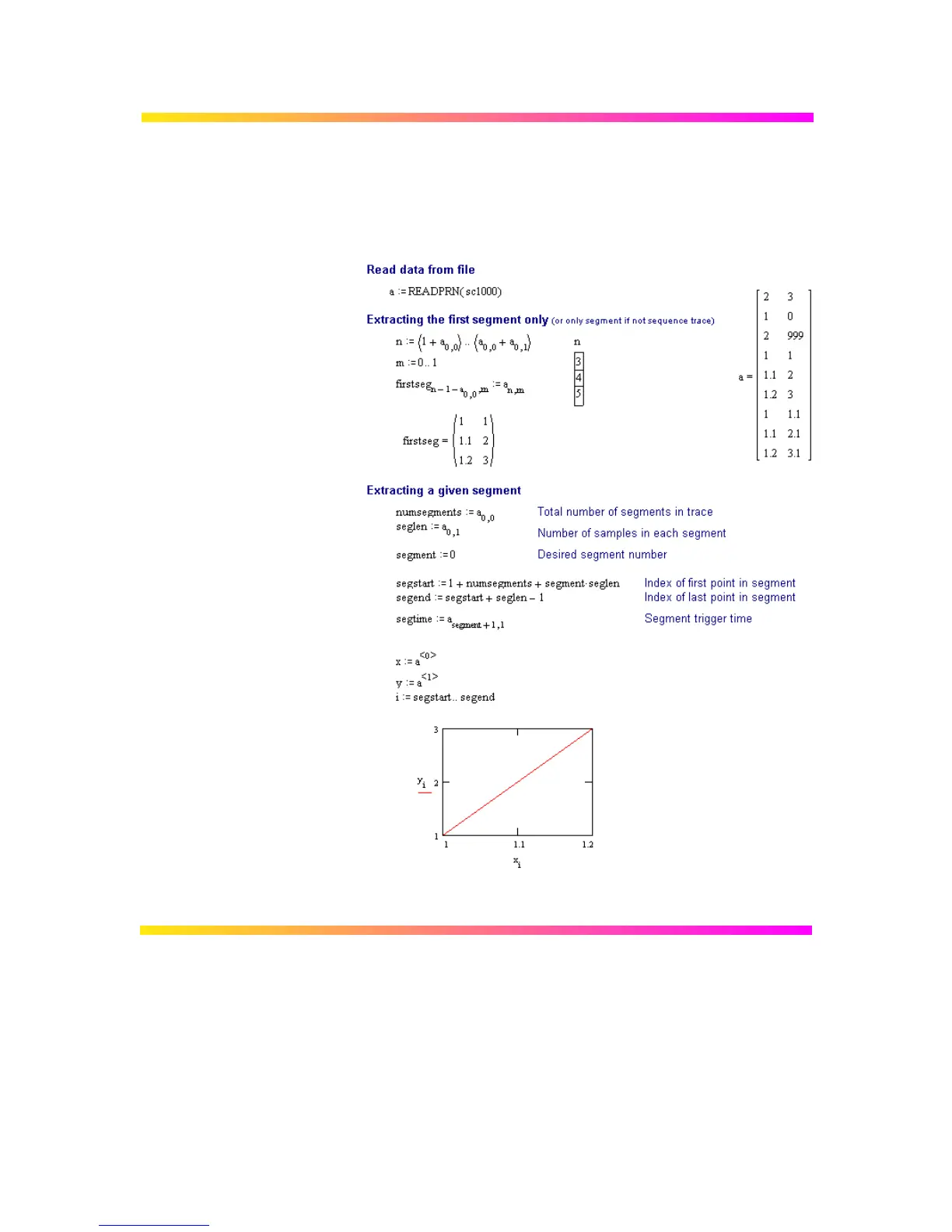Multi-Segment Example The following Mathcadexample demonstrates how to extract data