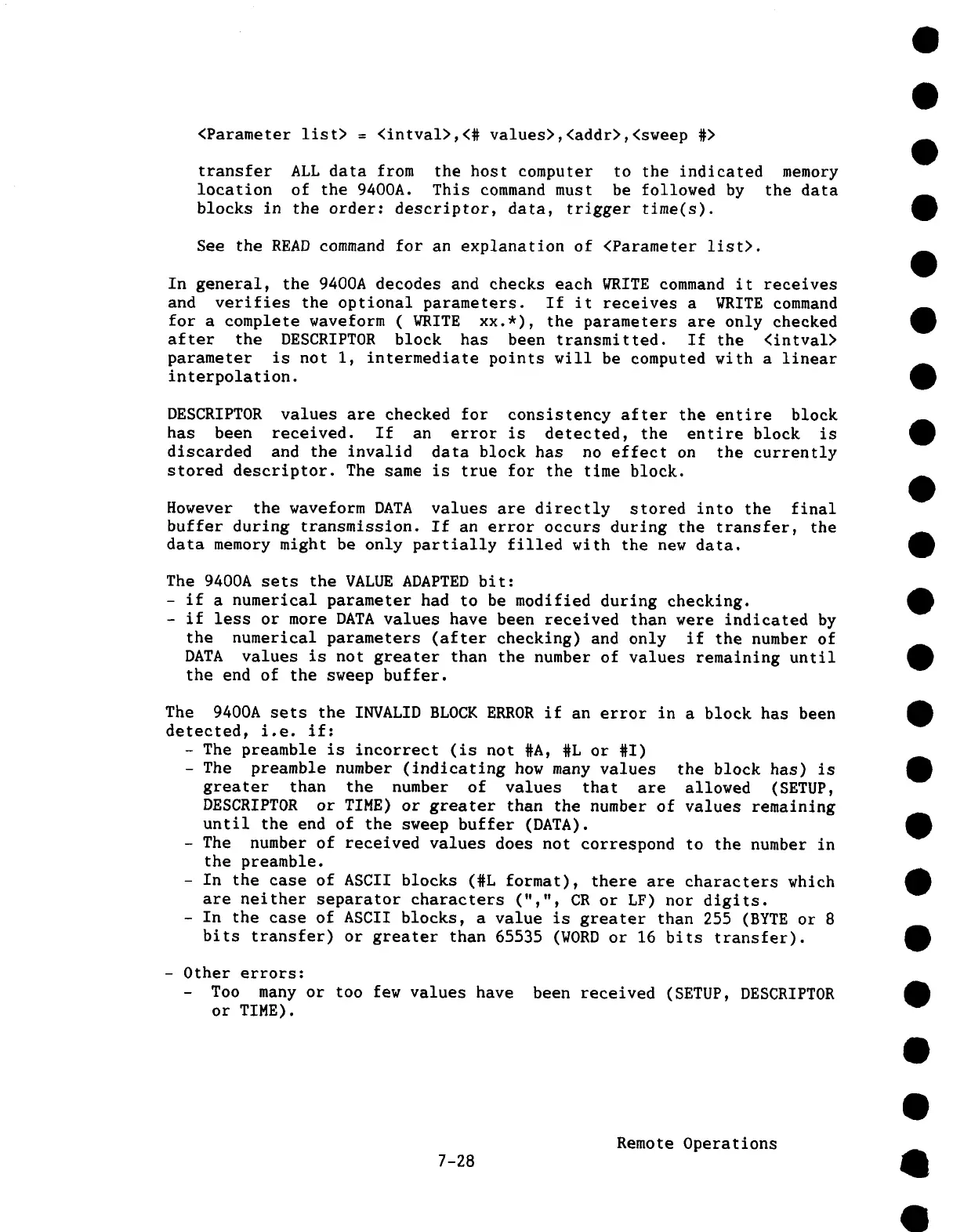 In general, the 9400A decodes and checks each WRITE command it receives