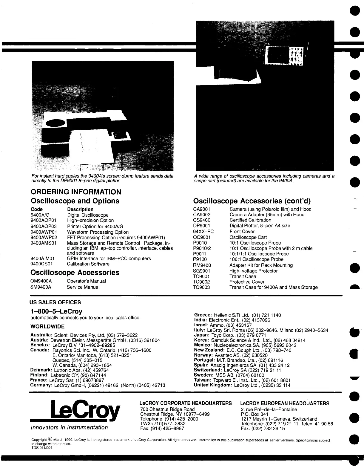 Copyright (~ March 1990. LeCroy is the registered trademark of LeCroy Corporation. All rights reserved. Information in this publication supersedes all earlier versions. Specifications subject