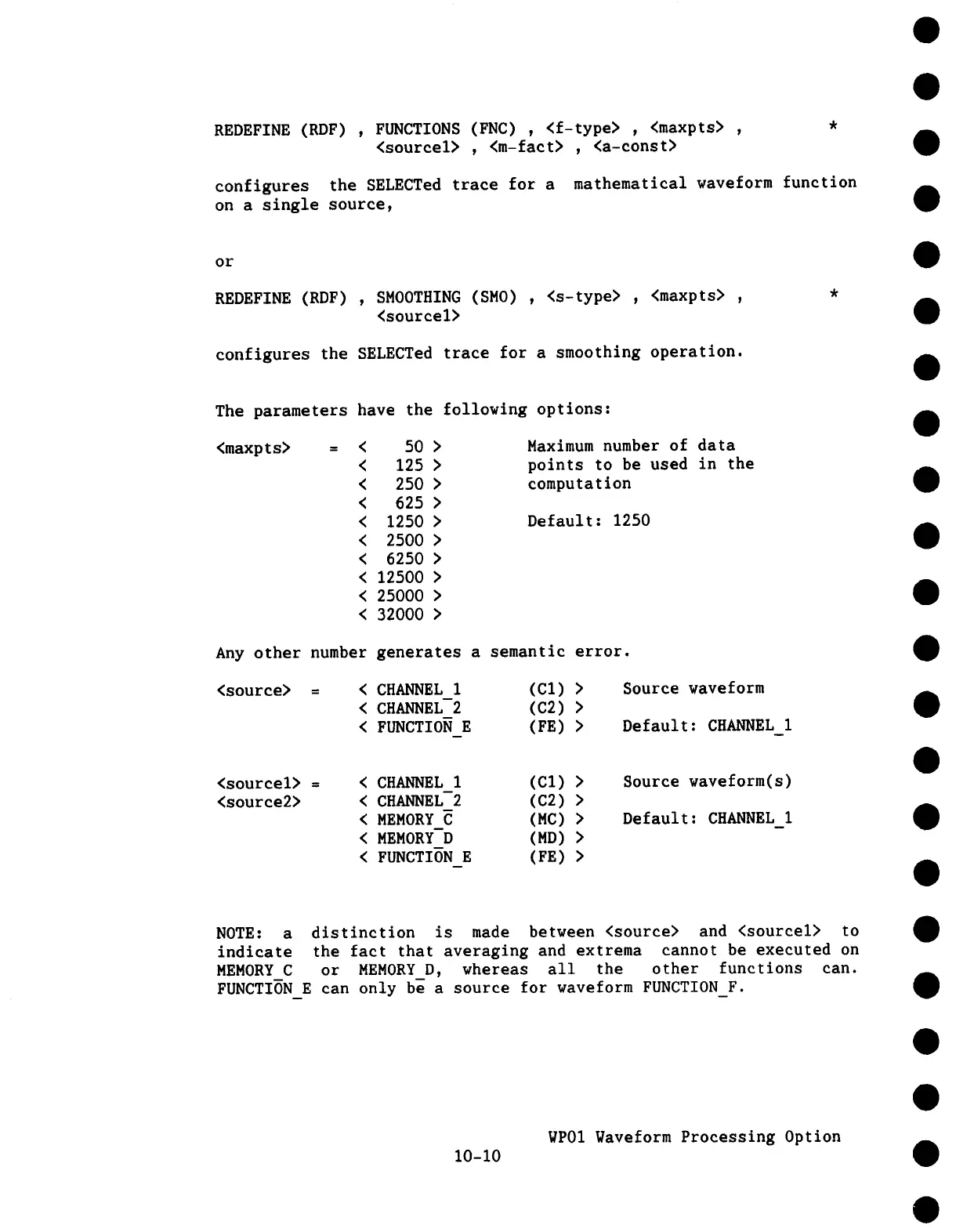 REDEFINE (RDF) , FUNCTIONS (FNC) <f-type> , <maxpts> ,