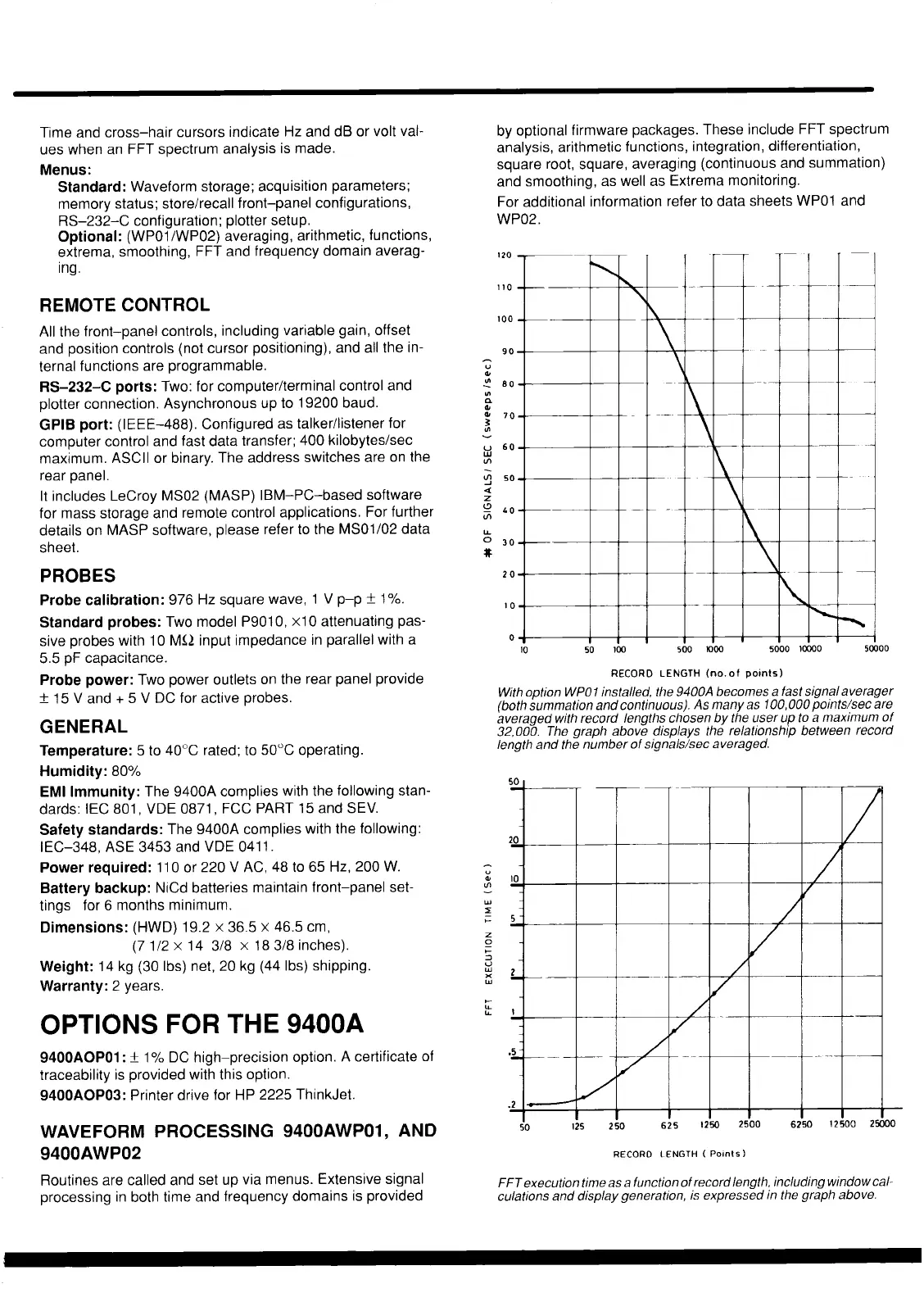 With option WPO 1 installed, the 9400A becomes a fast signal a verager
