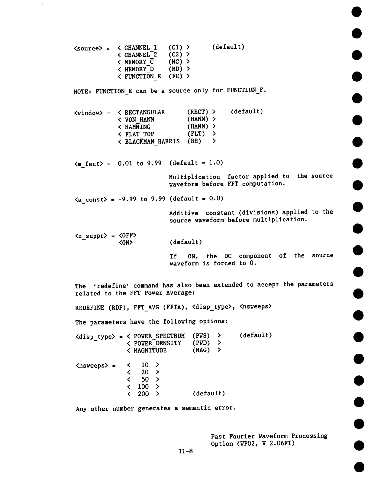 REDEFINE (RDF), FFT AVG (FFTA), <dlsp_type>, <nsweeps>