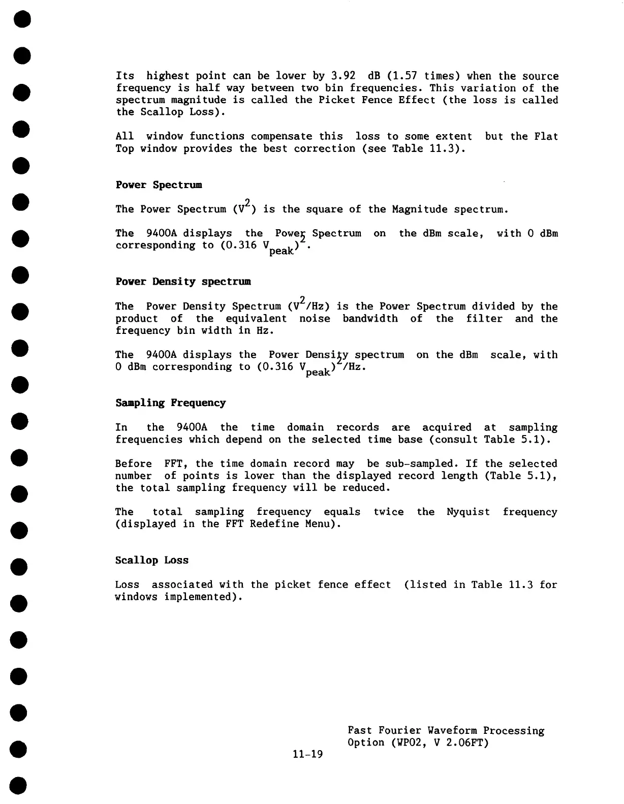 The 9400A displays the Powe~ Spectrum on the dBm scale, with 0 dBm