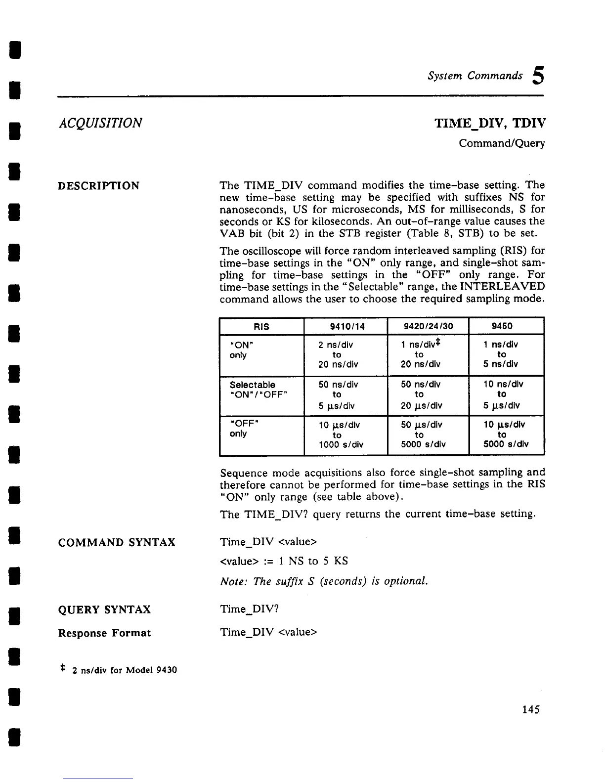 The TIME_DIV command modifies the time-base setting. The